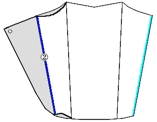| まず、  の部分を貼り合わせます。 胴体部分の両面テープに合わせ、安定翼部分を貼って下さい | 続いて  の部分を貼り合わせます。 裏返して安定翼部分に付けてある目印に合わせ、胴体部分の端を貼ります。 |